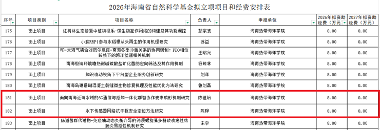 公司2名教师入选2026年海南省自然科学基金拟立项项目