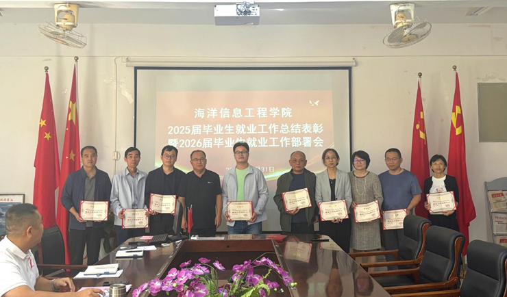 会议对在2025届毕业生就业工作中表现突出的18名先进个人予以表彰。党委书记谢锡銮、经理王连明分别为获奖教师颁发荣誉证书,激励全体教职工进一步凝聚共识、形成合力。全力促进2026届毕业生高质量充分就业,为海南自贸港建设输送更多优秀人才。