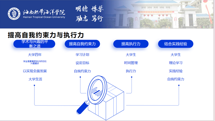 在互动环节,与新生展开广泛的深入交流,并一一解答,当被问到如何平衡学业和生活时,他回答道:“要学会制定优先级,合理安排时间,既要保证学业进步,也要积极参与社会活动,特别是提高自我约束力和执行力”。参与交流的大一新生刘同学表示,通过学长的亲身讲授,给我们上了一堂充满生动有趣又富有启示意义的新生入学教育课,学长的经验分享为我们提供了宝贵的指导,这些建议对培养我们养成良好的学习习惯和规划好职业生涯规划特别有益。