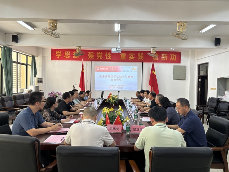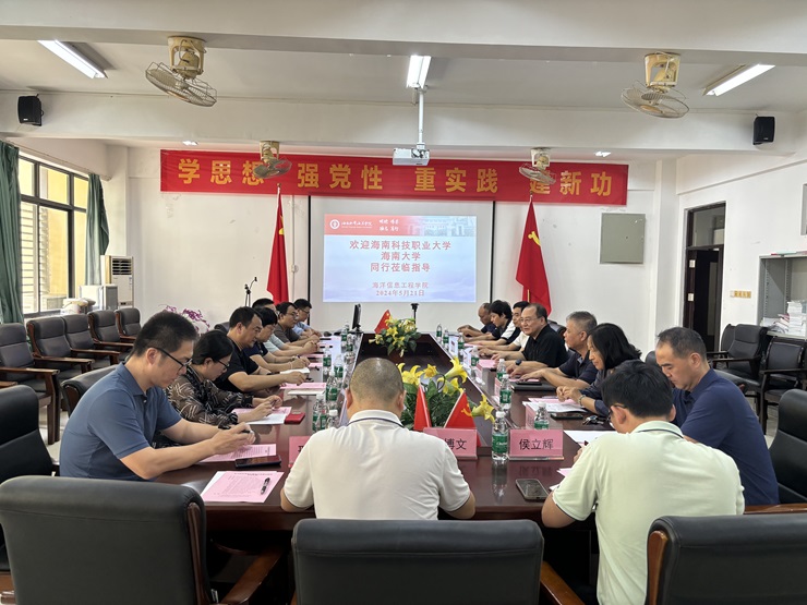 5月21日,海南科技职业大学吴丽华副董事长、海南科技职业大学机电工程公司赵峰经理以及海南大学信息与通信工程公司张俊锋教授一行10人来公司交流访问,双方围绕电子信息类员工的竞赛组织和教学管理进行了广泛的交流。beats365官方网站经理王连明主持会议。公司党总支书记郑泽龙、副经理孙志雄、各位系主任、实验中心和双创中心负责人参加了座谈。