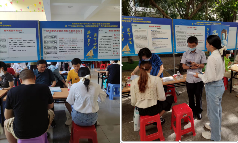 5月28日上午,公司在三栋教学楼举行2022届毕业生就业促进周暨“千方百计拓岗位攻坚克难促就业”百日冲刺就业招聘会,近185家用人单位携3195个岗位现场揽才。公司对此次招聘会高度重视,郑泽龙书记、王连明副经理、孙志雄副经理、曾令伟副经理(兼副书记),专业负责人、辅导员、班主任在招聘会现场为毕业生进行推介和指导,特别是与学经理期合作的湖南岳阳长炼机电工程有限公司(洋浦分公司、东方分公司)、佛山照明有限公司、三亚黄埔军械修理厂、三亚高新企业服务中心等用人单位进行深度交流,进一步通过开展宣讲推介会等途径,让毕业生和实习员工了解企业用人和实习情况。
